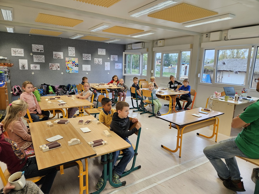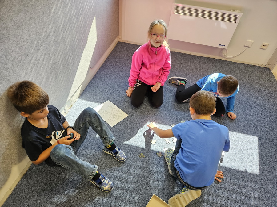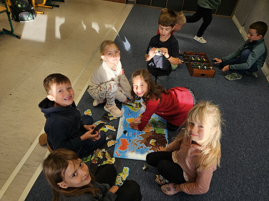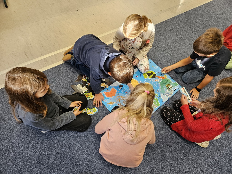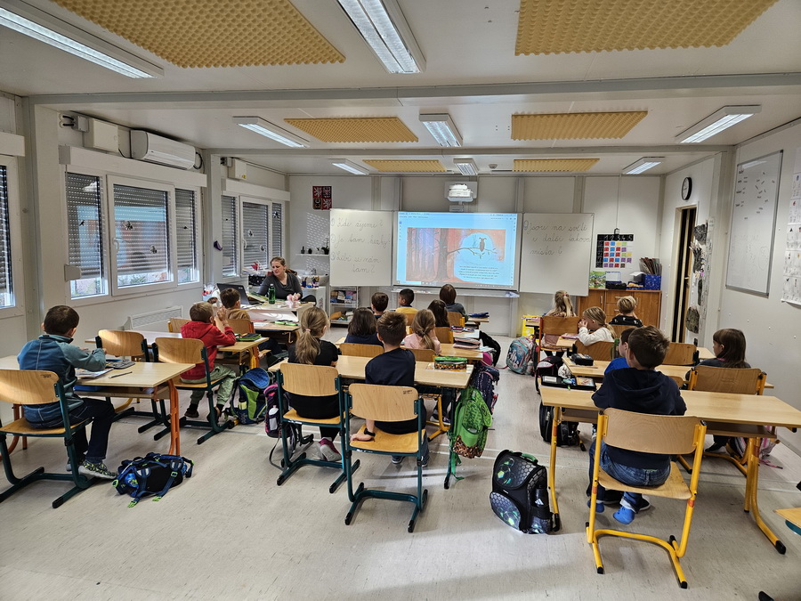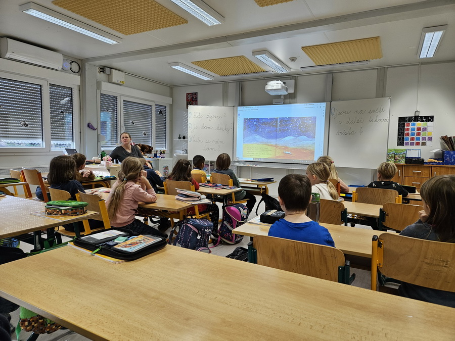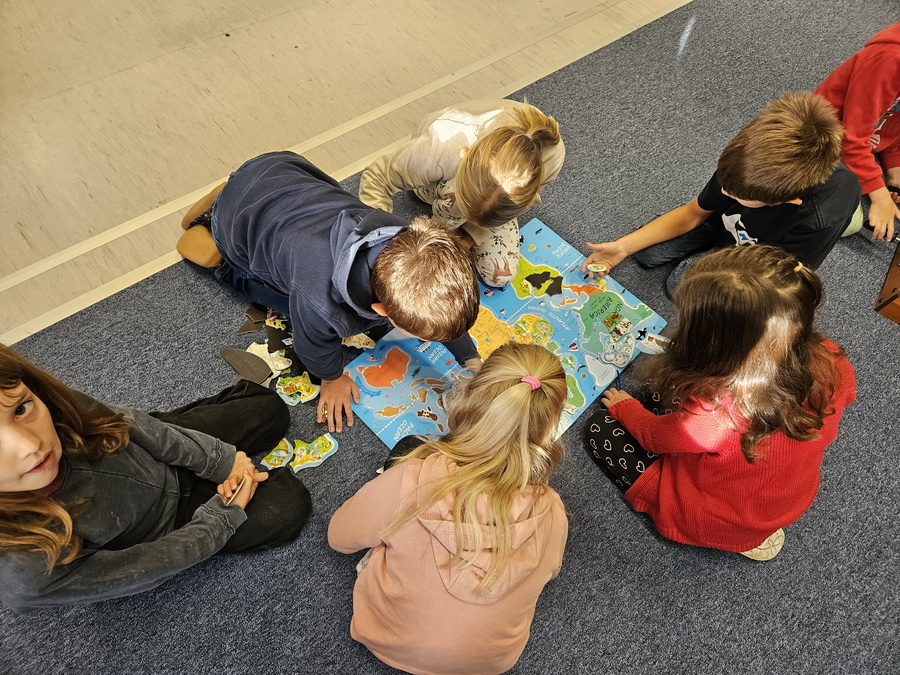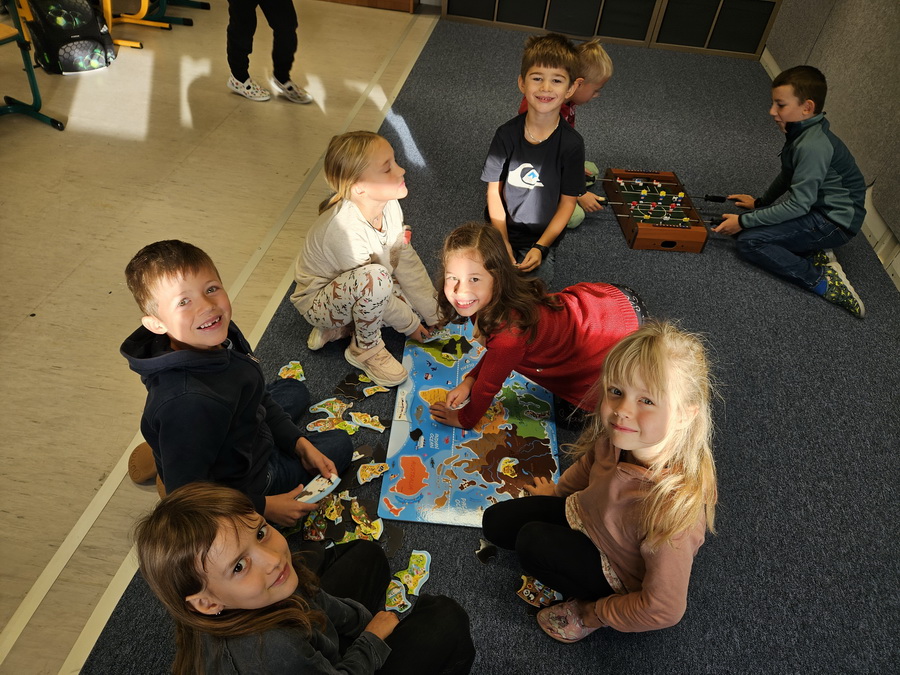 Ve třídě jsme se pak ponořili do tématu „Kde jsme na světě nejraději“. Každý z nás měl možnost sdílet své oblíbené místo – ať už to bylo doma, na chalupě, u babičky nebo třeba na hřišti. Povídali jsme si o tom v kruhu, kde nás doprovázel náš třídní maskot, který nám pomáhá lépe se poznat a naslouchat si.