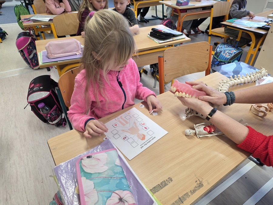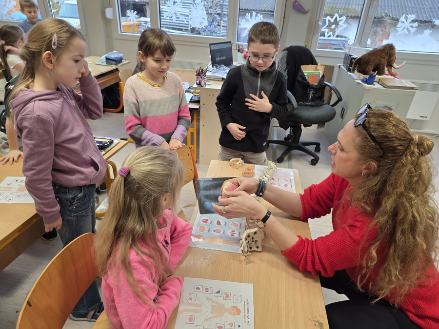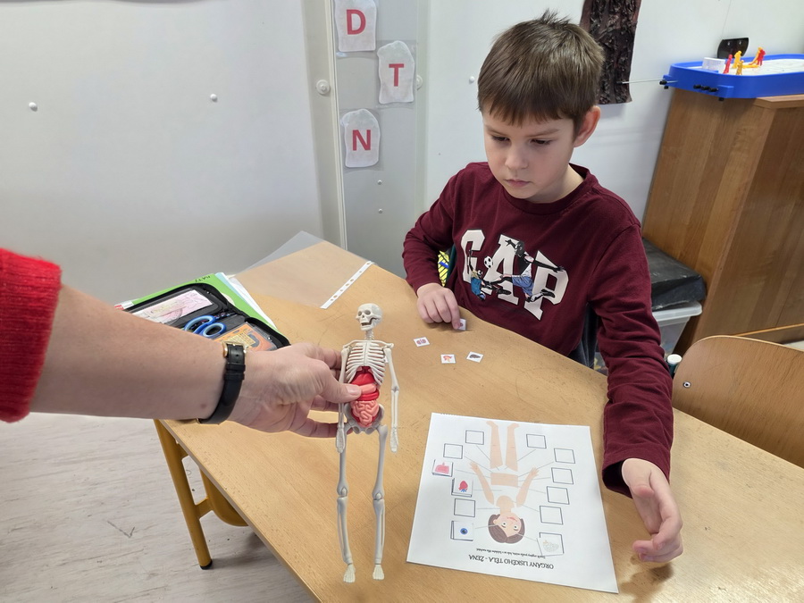 Děti se seznámily se základními orgány, jako je srdce, mozek, plíce a další části těla, které spolupracují jako dobře sehraný tým. Povídali jsme si o tom, jakou mají úlohu a proč je důležité se o své tělo starat.
