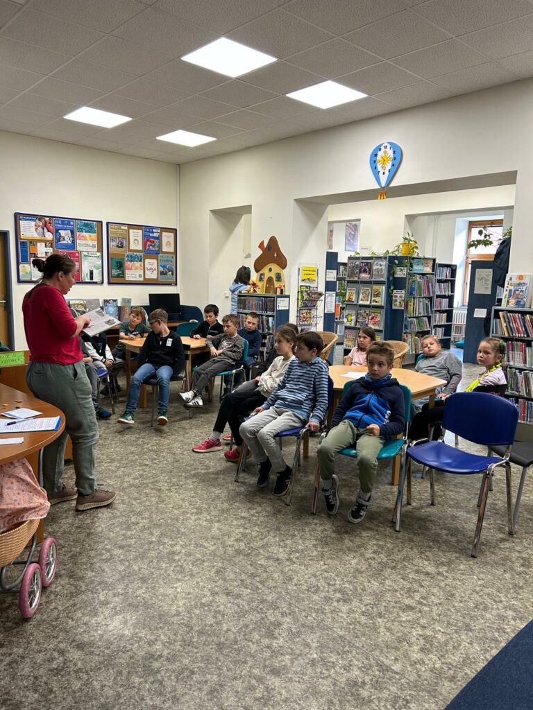 Paní knihovnice dětem představila fungování knihovny a ukázala jim, jak se v ní orientovat. Následovalo prolistování prvních titulů – a bylo jasné, že fantazie a dobrodružství mají děti na dosah ruky.