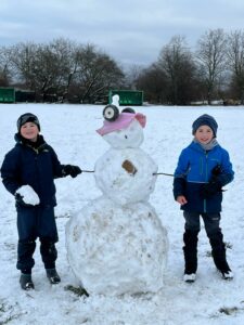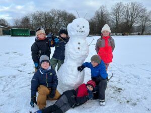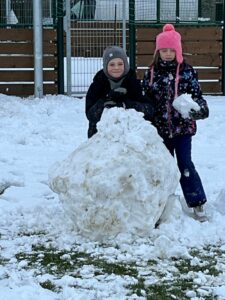 Kdo by čekal, že po třech dnech sněhu už omrzí stavění sněhuláků, ten se plete! Je to pro děti v družině ta nejlepší zimní zábava. Každý den je výzva, a ta dnešní byla obzvláště grandiózní.