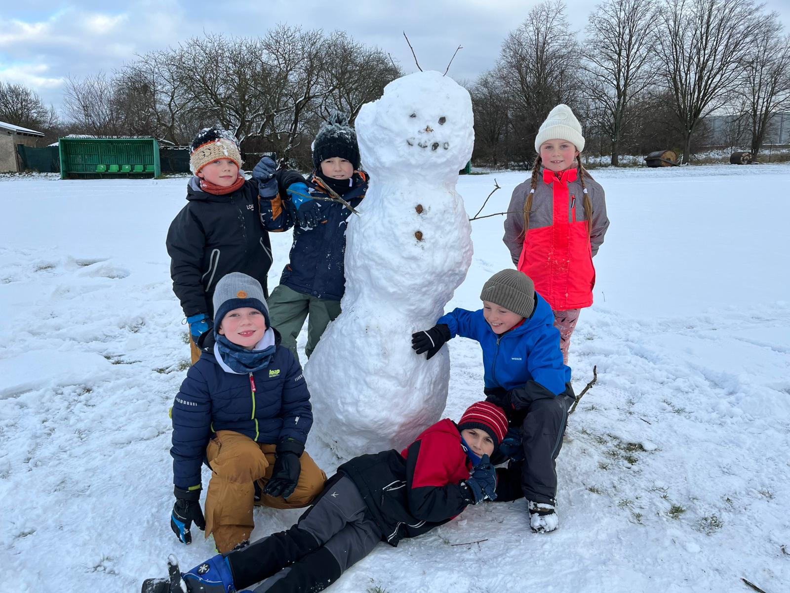 Kdo by čekal, že po třech dnech sněhu už omrzí stavění sněhuláků, ten se plete! Je to pro děti v družině ta nejlepší zimní zábava. Každý den je výzva, a ta dnešní byla obzvláště grandiózní.