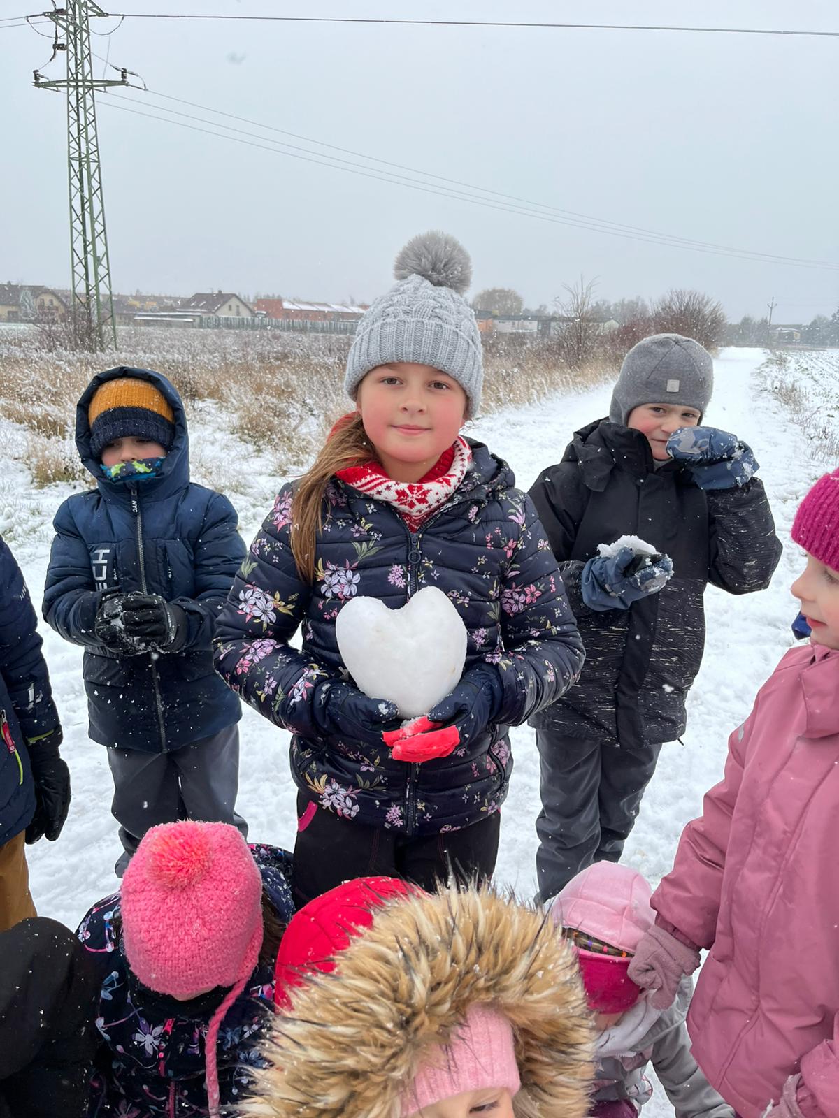 Dnes byli sněhuláci obzvláště obrovští! Naši malí stavitelé se do toho pustili s takovou vervou, že se jim podařilo vytvořit skutečné sněhové obry. Válely se obrovské koule, co sotva unesli, a na tvářích dětí se zračilo soustředění a odhodlání.