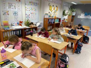 Po dlouhém trénování tužkou se děti dočkaly a poprvé vzaly do ruky skutečná pera. Nadšení bylo veliké – nové pomůcky, nové sešity a pocit, že se z nich pomalu stávají opravdoví školáci. První pokusy byly plné soustředění i překvapení. Děti brzy zjistily, že psaní perem není tak jednoduché, jak si možná představovaly. Inkoust se někdy rozběhl rychleji než ruka, písmenka potřebovala větší trpělivost a správný úchop dal také zabrat. Přesto se nikdo nevzdal. Naopak, nová výzva děti motivovala a psaní je baví čím dál víc. Postupně se učíme... Celý článek >>