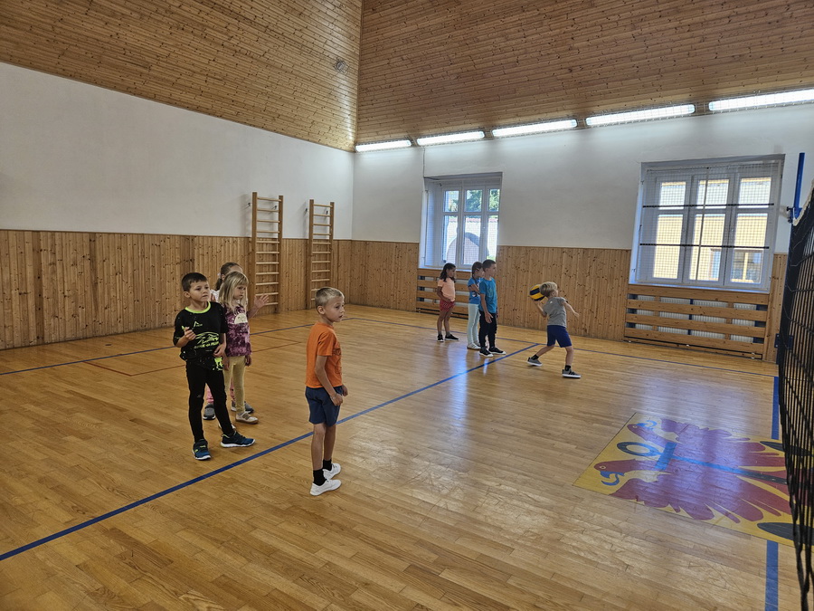 Na tělocviku jsme trénovali s míčem – házeli jsme, chytali a hráli přehazovanou. Byla to skvělá zábava, při které jsme se pořádně rozhýbali a zároveň si procvičili týmovou spolupráci.