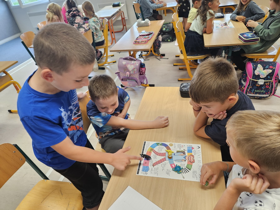 V rámci výuky jsme si také zahráli hru zaměřenou na bezpečnost na cestách. Učili jsme se, jak se správně chovat jako chodci i cyklisté, a připomněli si důležitá pravidla, která nám pomáhají být v bezpečí.