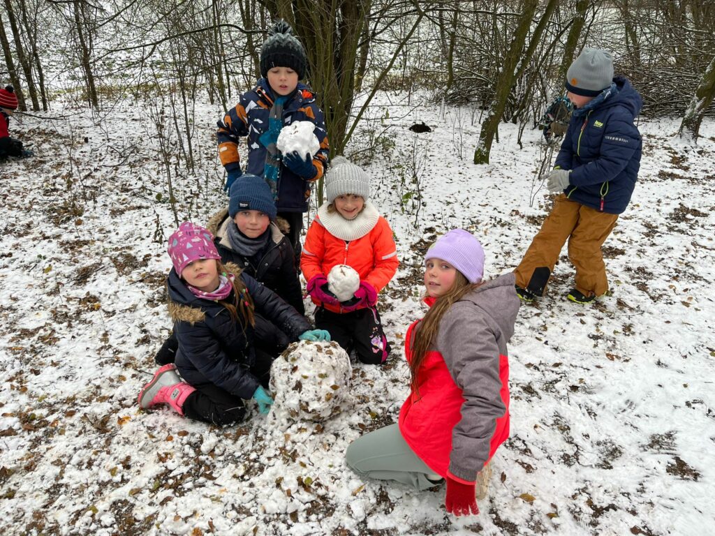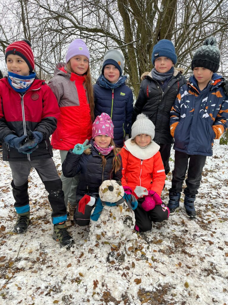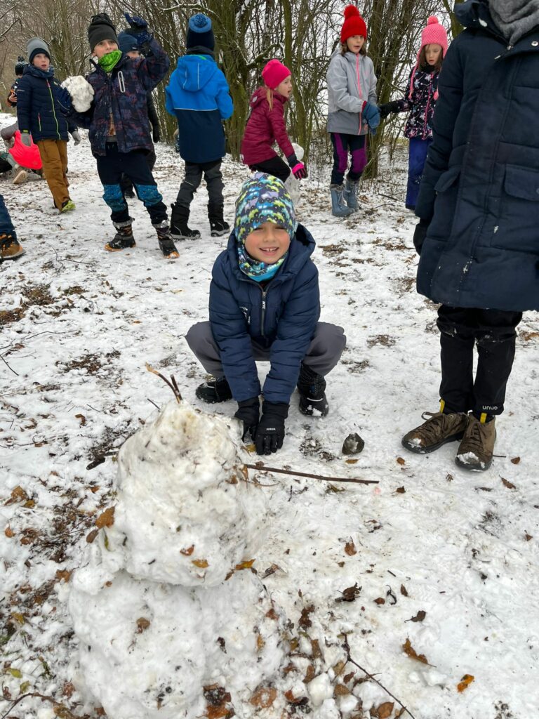Pravidla? Žádná – jen fantazie a to, co kdo venku našel. Vznikaly tak originální sněhuláci z čistého sněhu, doplnění větvičkami, kamínky nebo jinými přírodninami. Každý tým měl vlastní nápady a všichni pracovali s nadšením.