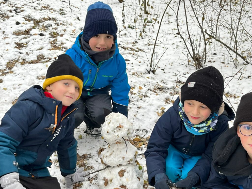 Dnes nás potěšil první sníh! Na bobování to sice nebylo, ale na stavbu sněhuláků sněhu stačilo. Družina vyrazila ven a začal velký souboj o nejhezčího sněhuláka.