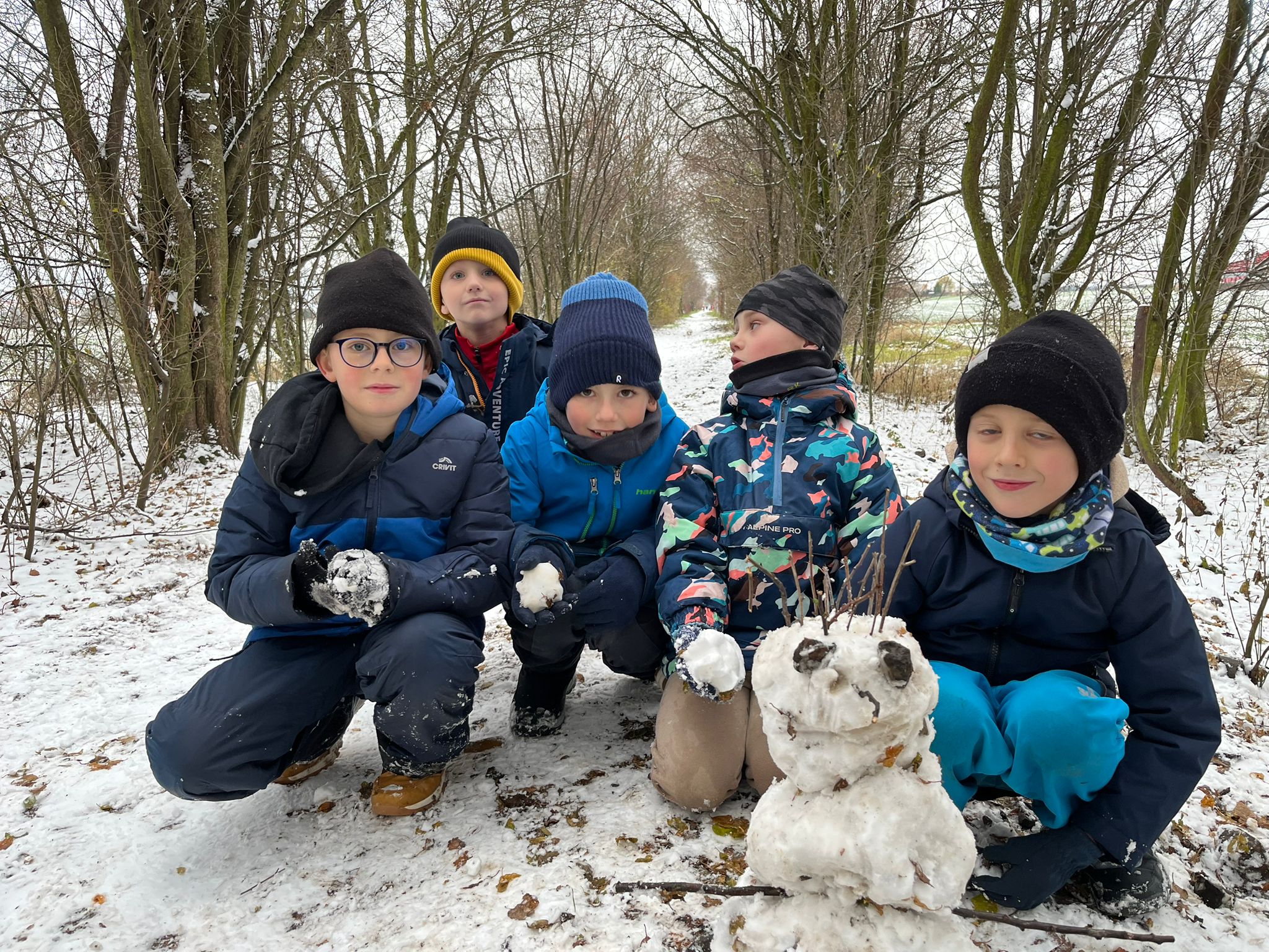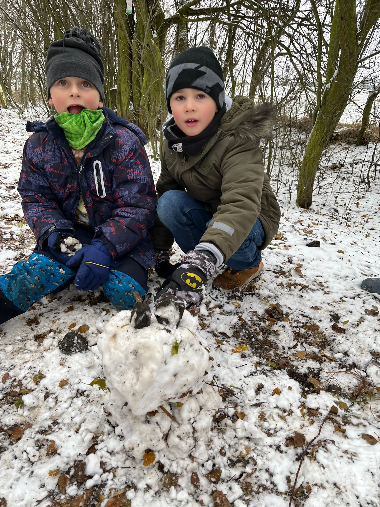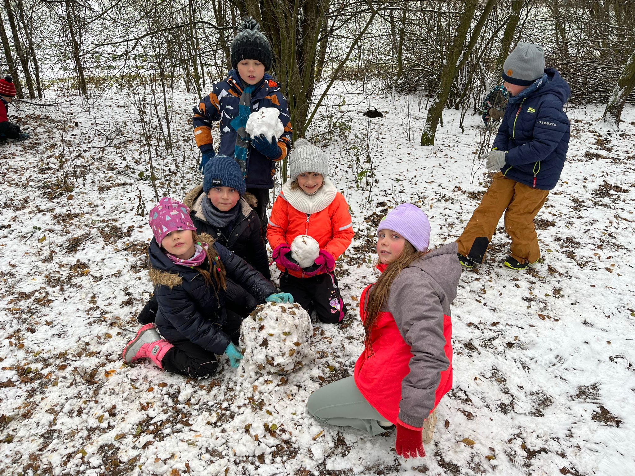 Dnes nás potěšil první sníh! Na bobování to sice nebylo, ale na stavbu sněhuláků sněhu stačilo. Družina vyrazila ven a začal velký souboj o nejhezčího sněhuláka.