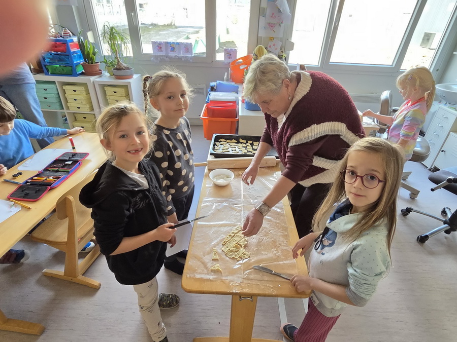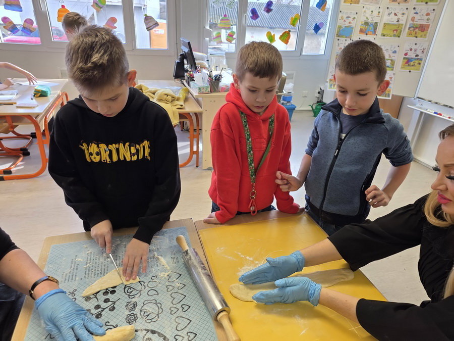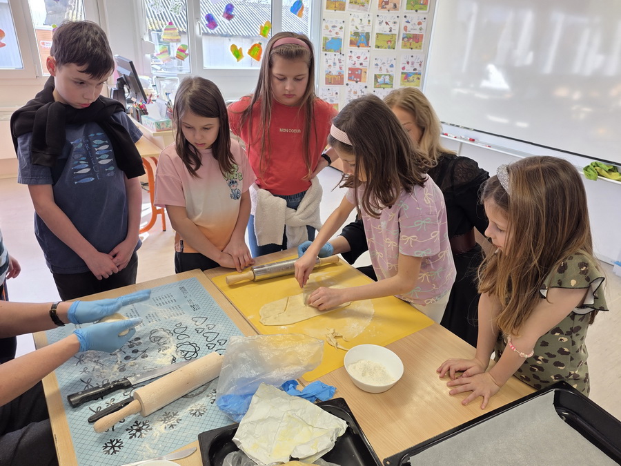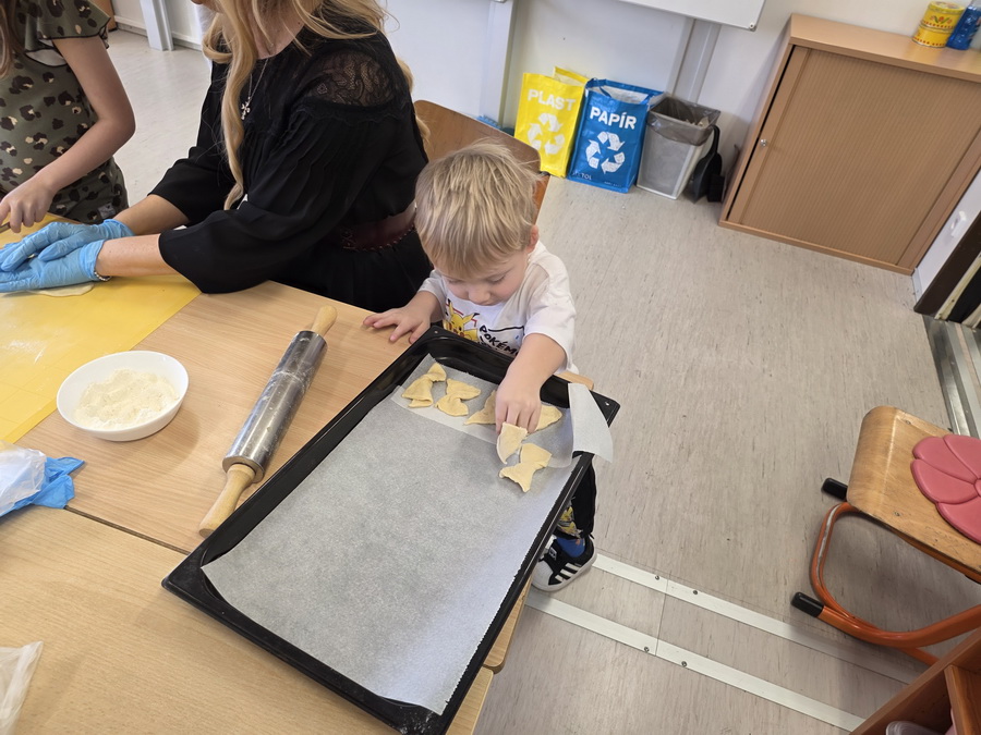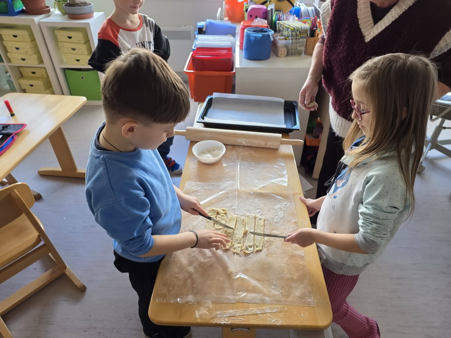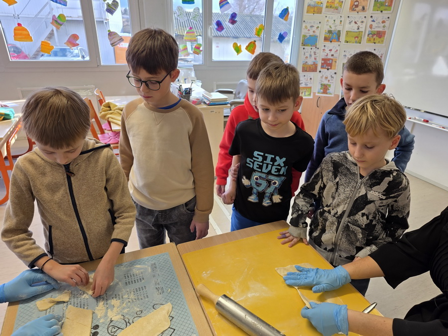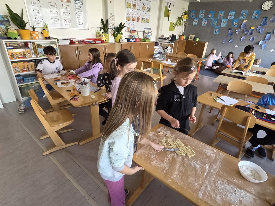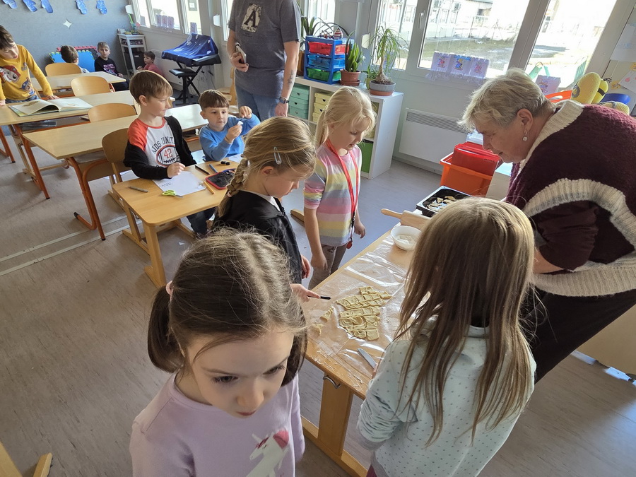 Pod vedením paní vychovatelek se děti naučily vyválet těsto, vykrajovat různé tvary a přenášet na plech. Pak se výtvory daly péct do trouby, aby byly krásně zlatavé a křupavé. Nechybělo ani cukrování ještě teplých kousků, což děti bavilo snad ze všeho nejvíc.