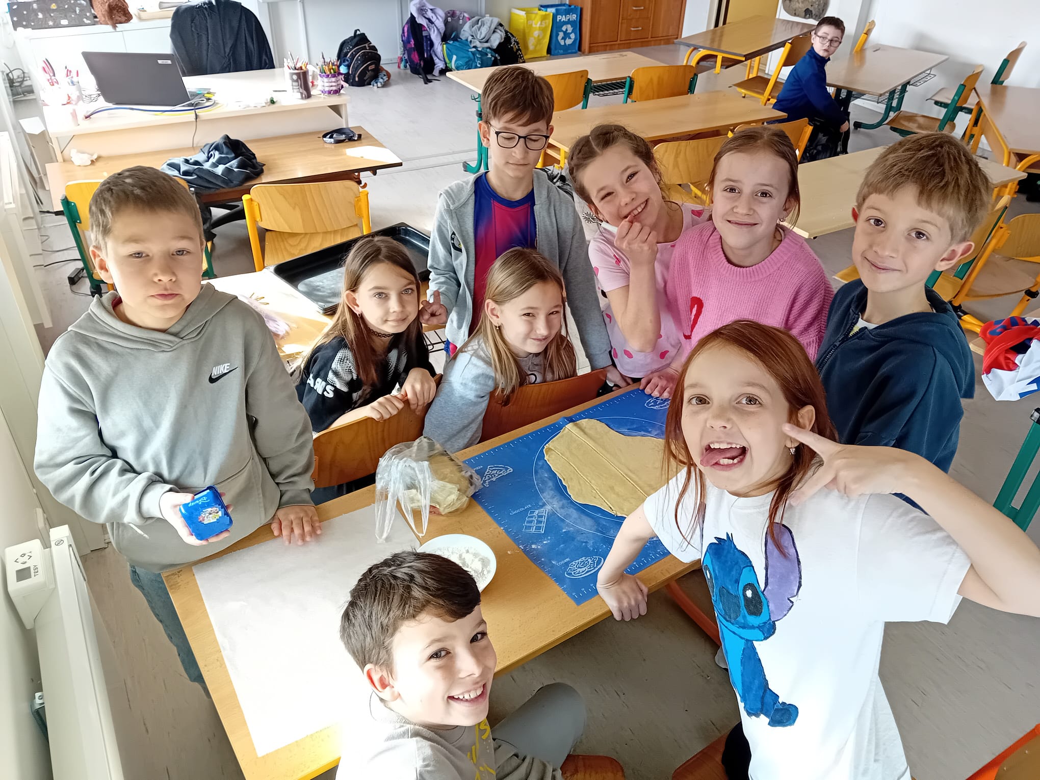 Pod vedením paní vychovatelek se děti naučily vyválet těsto, vykrajovat různé tvary a přenášet na plech. Pak se výtvory daly péct do trouby, aby byly krásně zlatavé a křupavé. Nechybělo ani cukrování ještě teplých kousků, což děti bavilo snad ze všeho nejvíc.