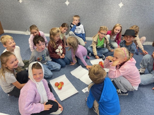 V naší 1.A jsme se tento týden pustili do porovnávání množství. Aby to nebyla jen suchá čísla a znamení matematických znamének < > a = , vzali jsme si na pomoc písničku „Měla babka čtyři jablka“. A co by to bylo za matematiku bez opravdových jablíček?