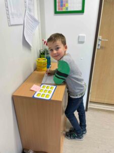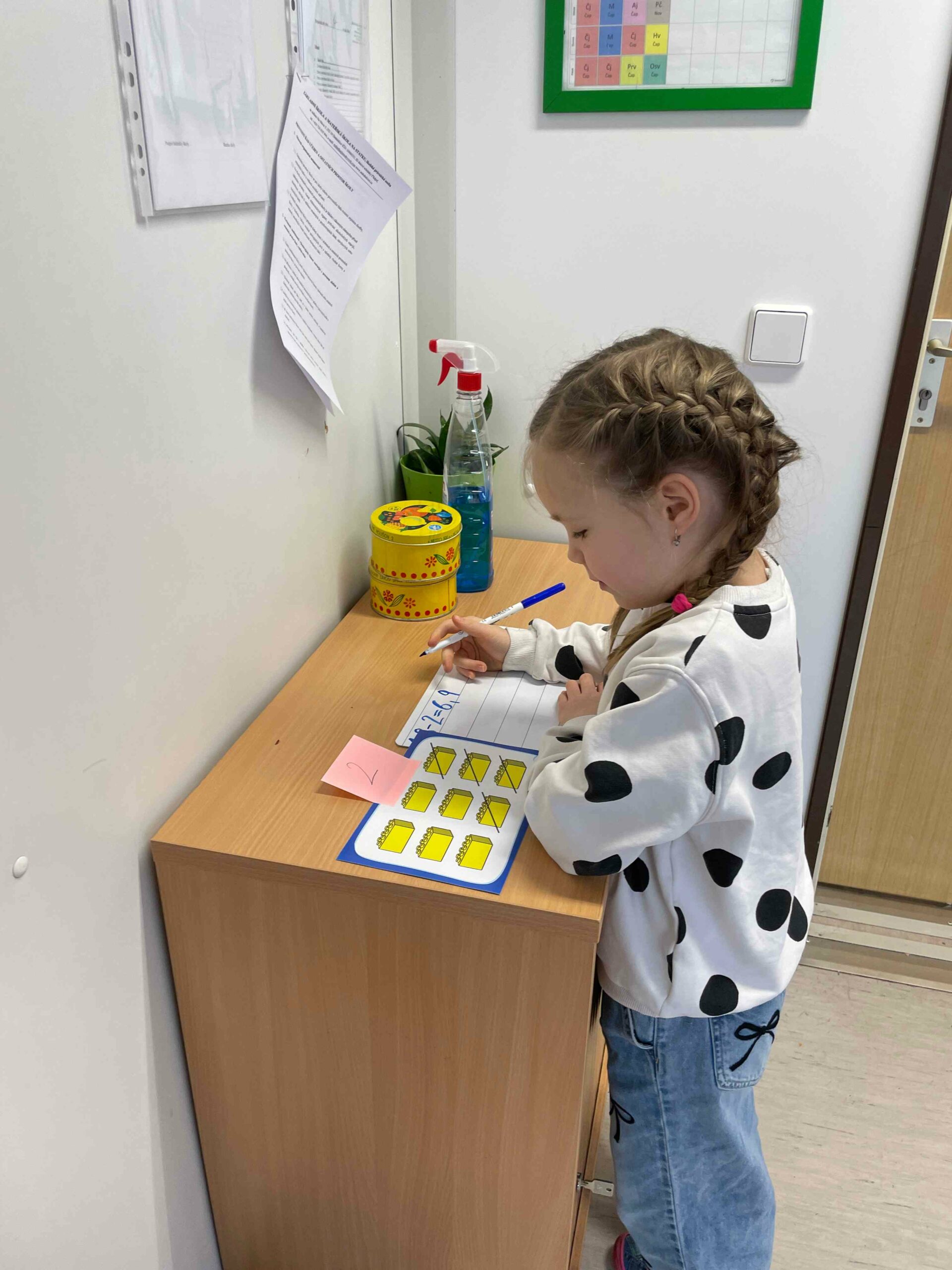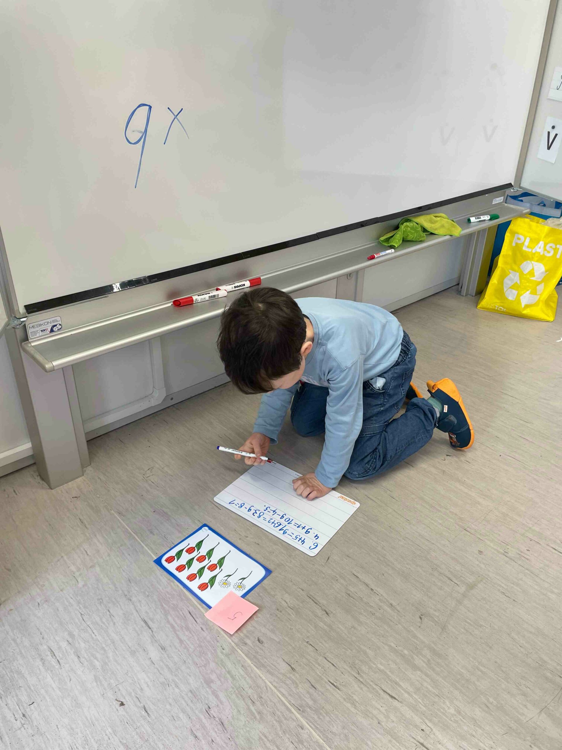 Matematika nemusí znamenat jen sezení v lavici a počítání do sešitu. V naší třídě jsme si vyzkoušeli, že se dá počítat i v pohybu a na různých místech ve třídě. Děti pracovaly s obrázkovými kartami, počítaly předměty, zapisovaly příklady na stíratelné tabulky a hledaly správná řešení. Každý měl své stanoviště a mohl si zvolit, kde a jak bude pracovat – někdo u stolku, jiný na koberci nebo klidně na zemi.