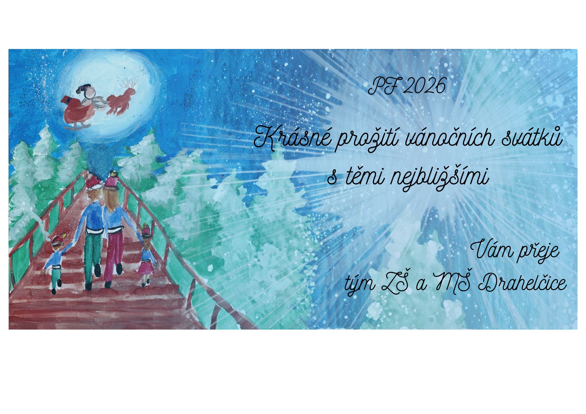 Celá MŠ a ZŠ Drahelčice přeje všem rodičům, dětem, prarodičům i přátelům školy krásné a klidné Vánoce, plné pohody, radosti a společně strávených chvil.