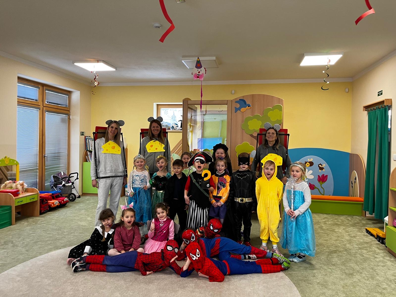 Děti a paní učitelky přišly do školky v krásných maskách a nápaditých kostýmech. Mezi maskami nechyběly pohádkové bytosti, zvířátka, princezny, víly, superhrdinové ani policisté.