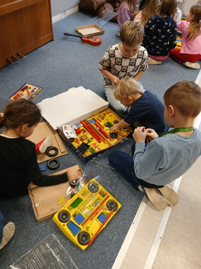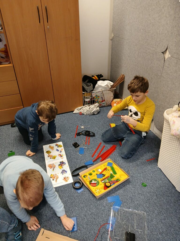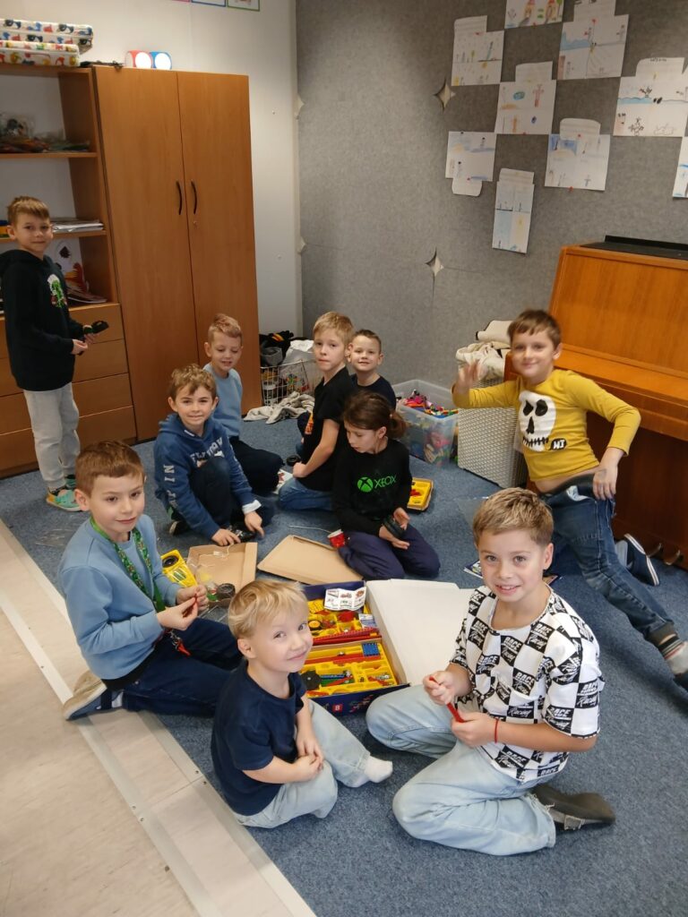 Dnešní pracovní činnosti ve 2.A se nesly v duchu tvoření, spolupráce a technického objevování. Děti dostaly k dispozici legendární stavebnici Merkur a hlavní úkol byl jasný – zapojit fantazii a pustit se do stavění. Každý mohl vytvořit vlastní model podle svého nápadu, někdo stavěl auta, jiný stroje či nejrůznější konstrukce.