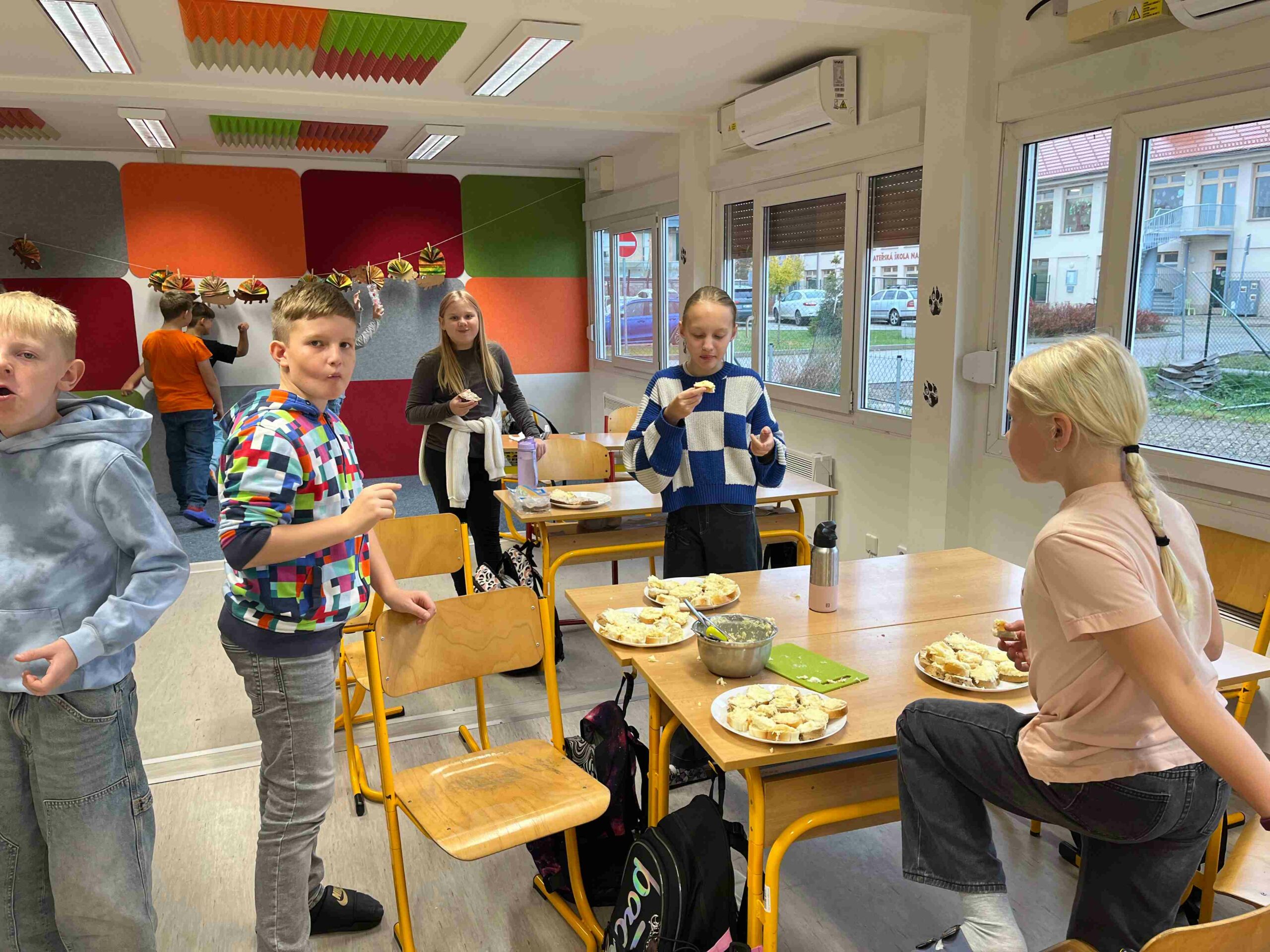 Tentokrát jsme si pochutnali na domácích pomazánkách, které si děti samy společně ráno připravily – nechyběla vajíčková, tvarohová ani sýrová, a některé měly i tajné rodinné recepty!