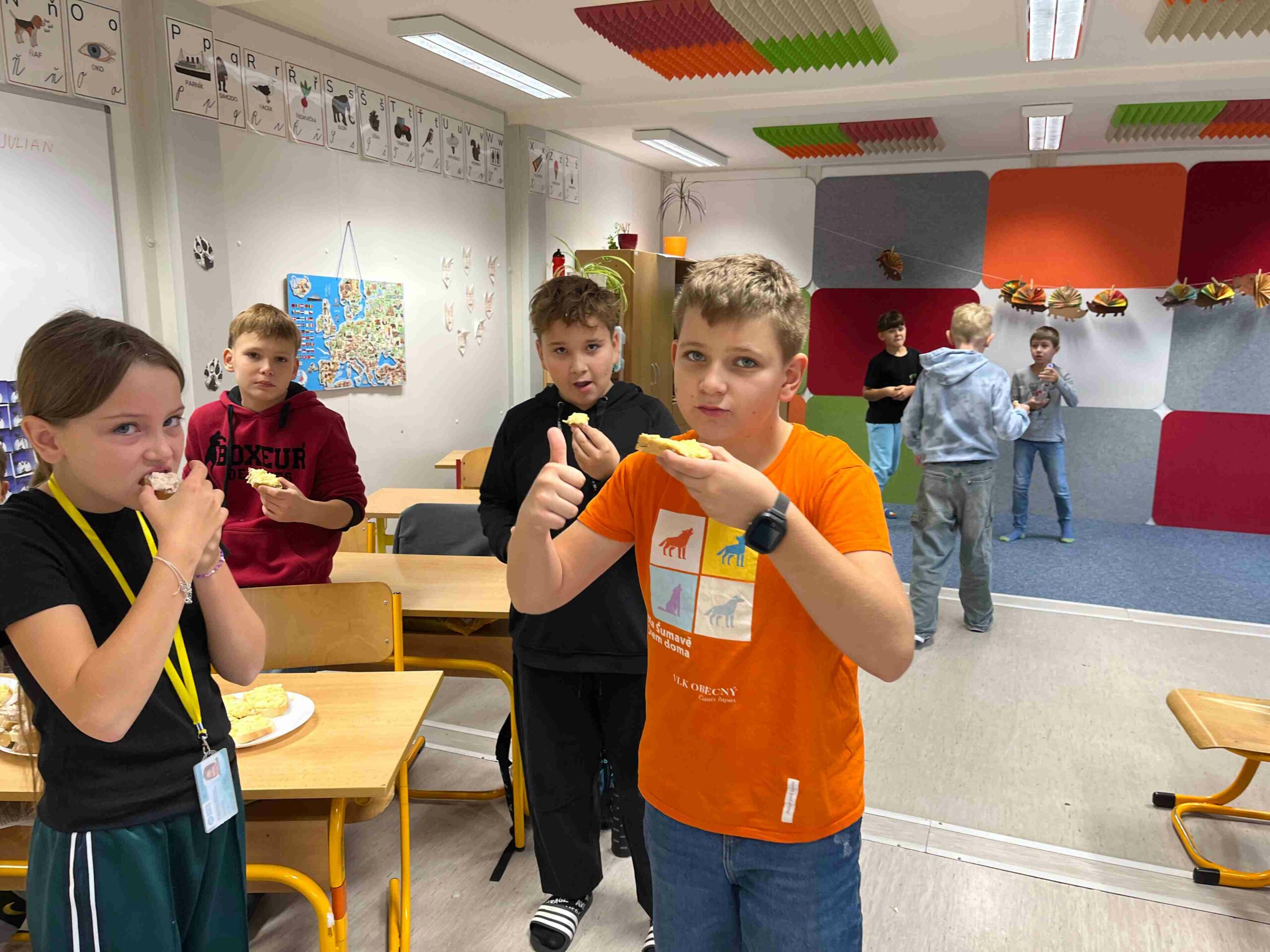 Každý měsíc se třída 5.A schází u společné snídaně. Nejde ale jen o jídlo – je to chvíle, kdy si můžeme popovídat, zasmát se a začít den v pohodové atmosféře.