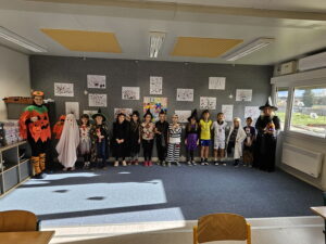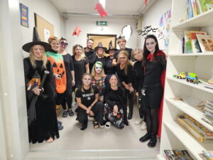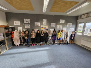 Vrchol týdne přišel v pátek, kdy jsme se ponořili do halloweenského učení. Den jsme zahájili speciálním tělocvikem v duchu Halloweenu. Poté jsme se přesunuli do třídy, kde nás čekalo učení plné kouzel, strašidelných úkolů a tvořivých aktivit. Atmosféra byla úžasná – děti i pedagogický sbor si den náramně užili. Samozřejmě nechyběly kostýmy, tematické hry a spousta smíchu.