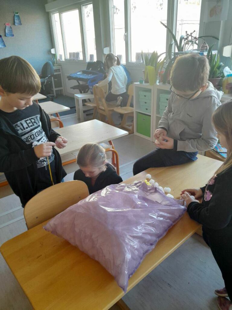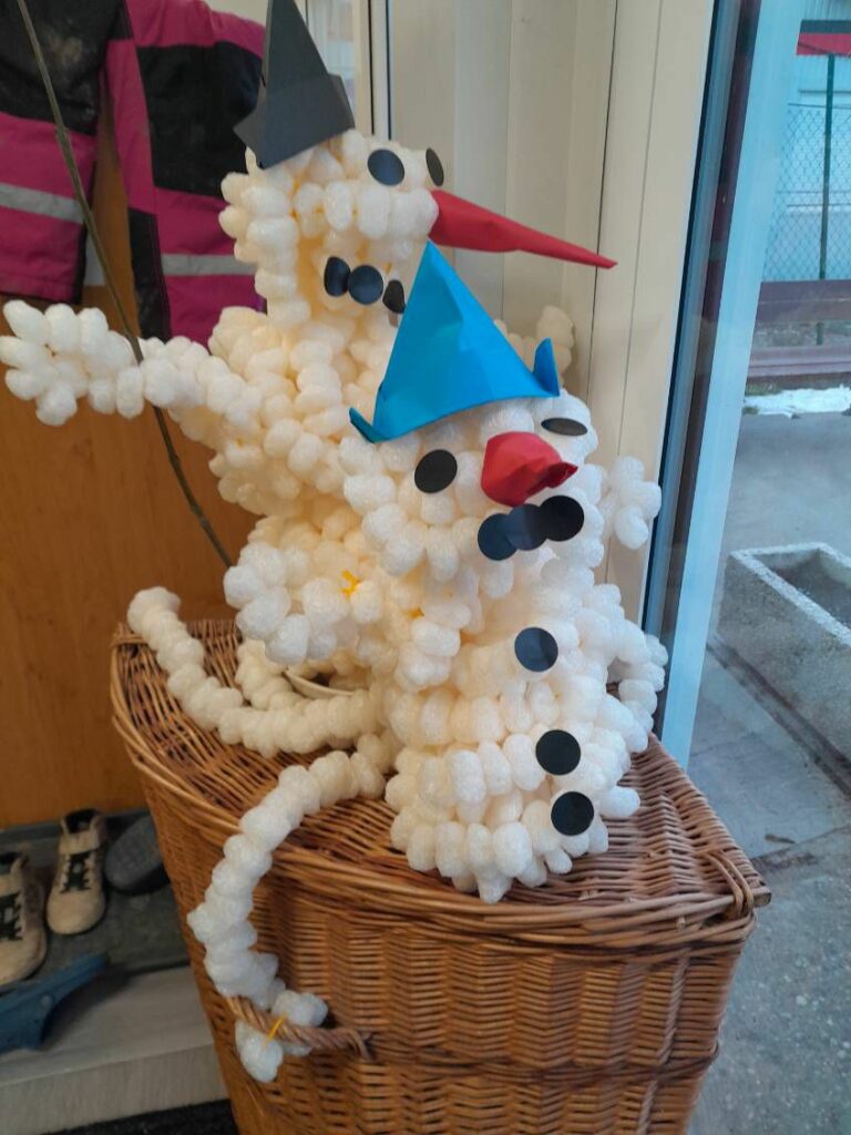 Přestože venku sníh občas chybí, děti si ho do školy „přivolaly“ samy – a to v podobě veselých sněhuláků. Pod vedením vychovatelek vyráběly, lepily, šily a zdobily sněhuláky.