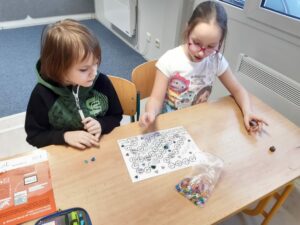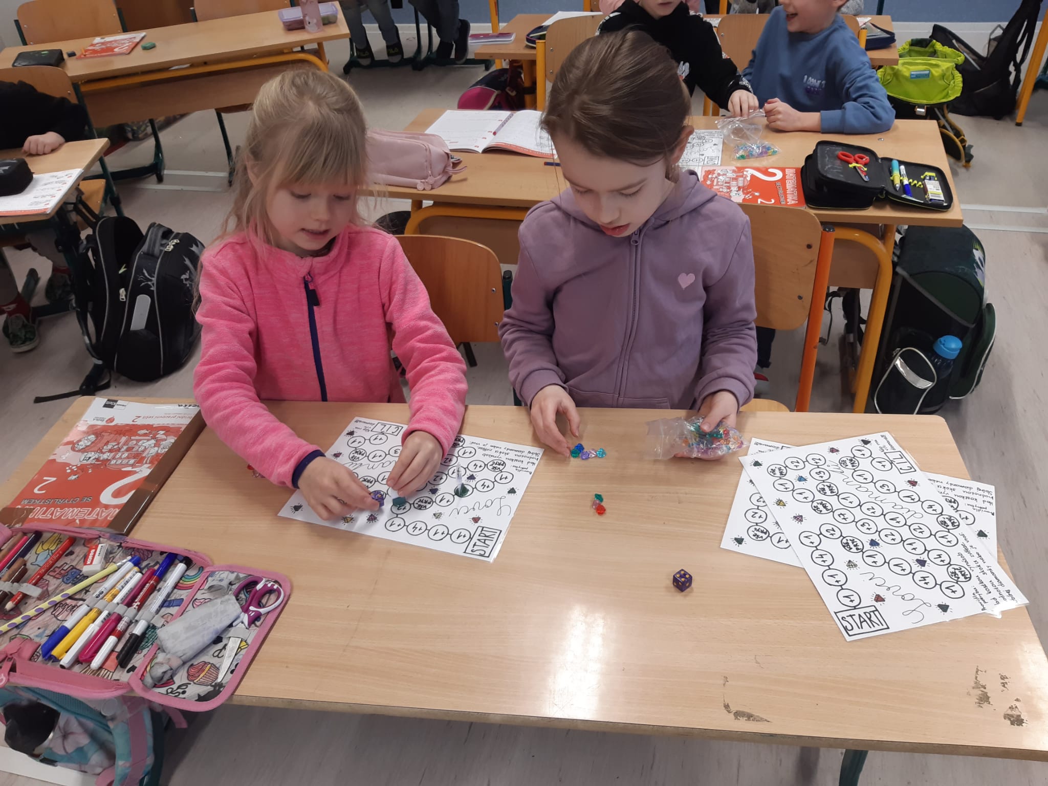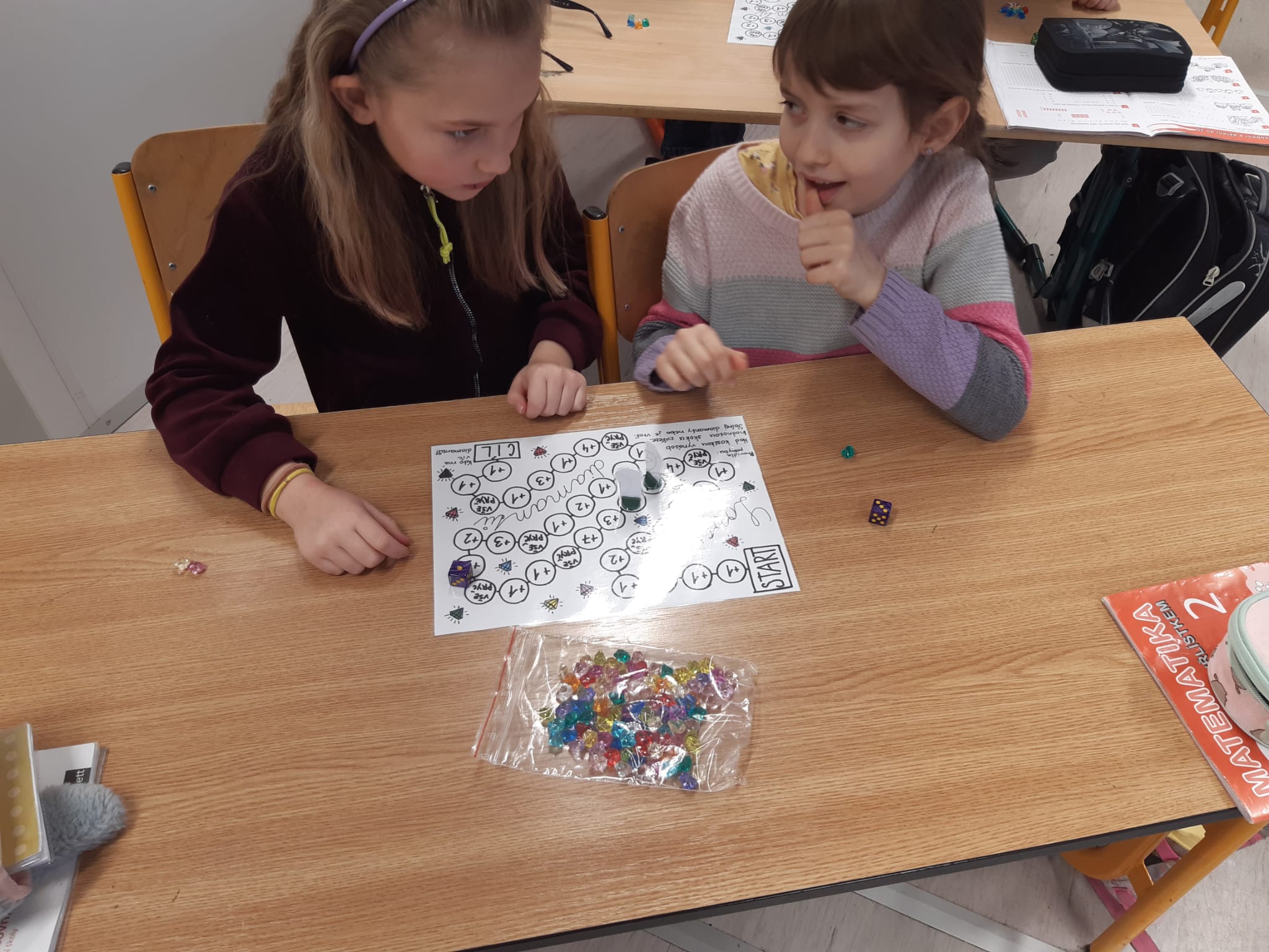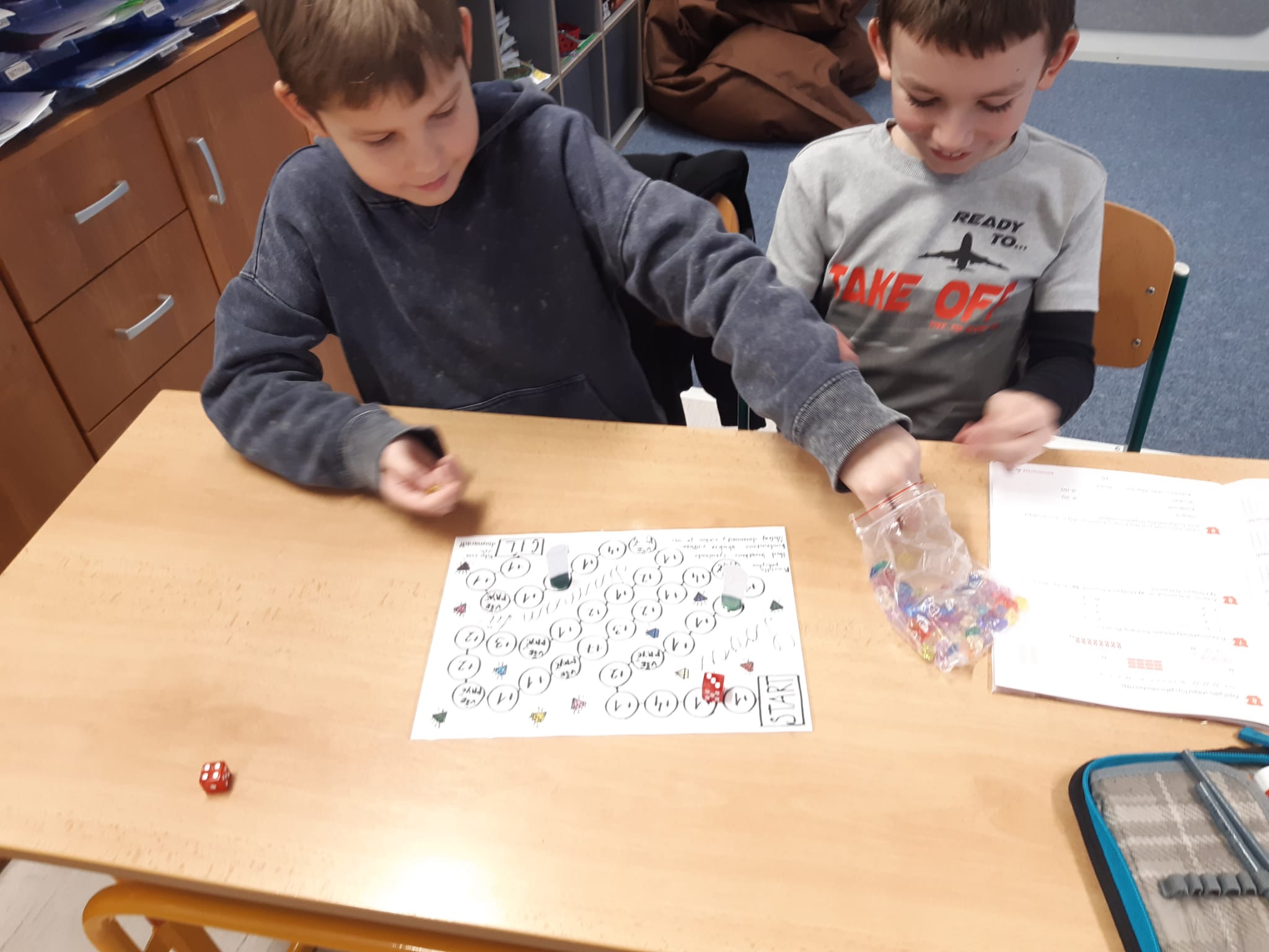 Každá dvojice žáků dostala do lavice vlastní herní plán. Součástí byla také figurka blešky, kostka a malé diamanty. Úkolem bylo hodit kostkou, vynásobit hozené číslo dvěma a posunout blešku na příslušné políčko. Na cestě děti sbíraly diamanty a sledovaly, jak se násobky dvojky pravidelně zvyšují.