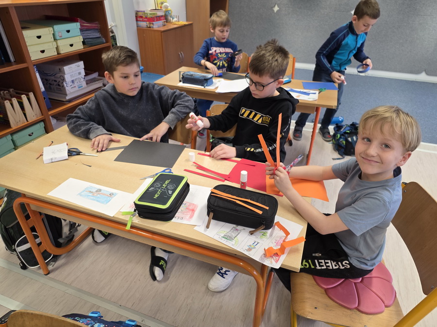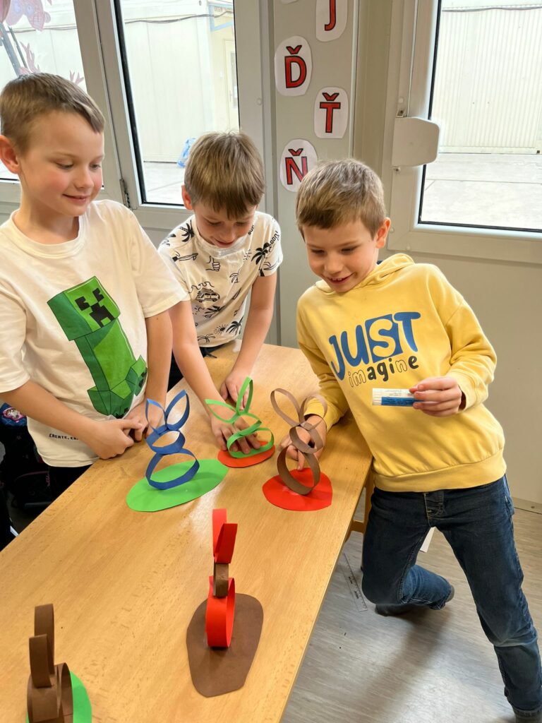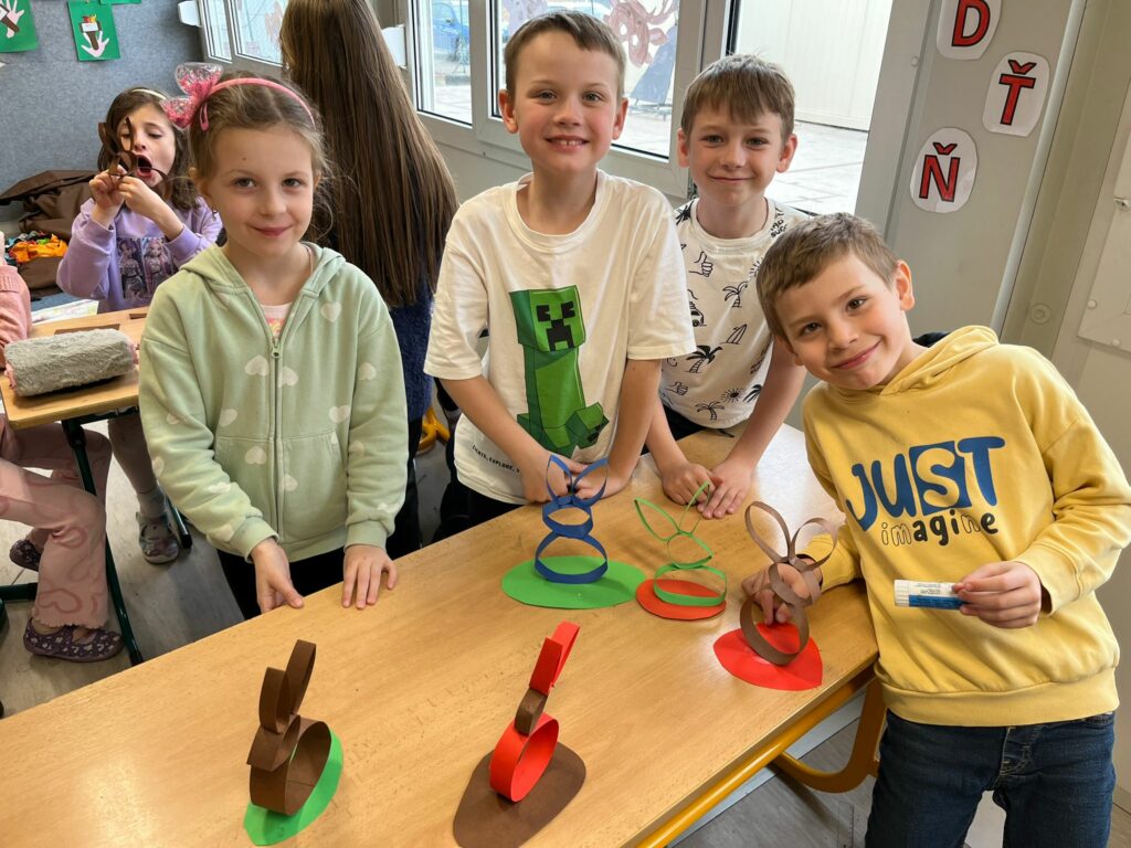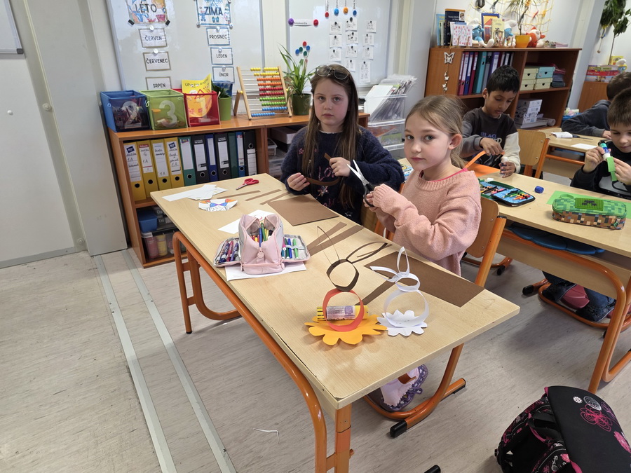 Velikonoce se blíží a ve školní družině to vypadá, jako by někdo otevřel kohoutek s nápady, energií a dobrou náladou. Děti se pustily do velikonočního tvoření a tentokrát si vzaly na paškál veselé papírové zajíčky. A že to nebyla žádná tichá, soustředěná práce – spíš směsice smíchu, stříhání, šustění papíru a radostného chaosu, který k předvelikonočním přípravám prostě patří.