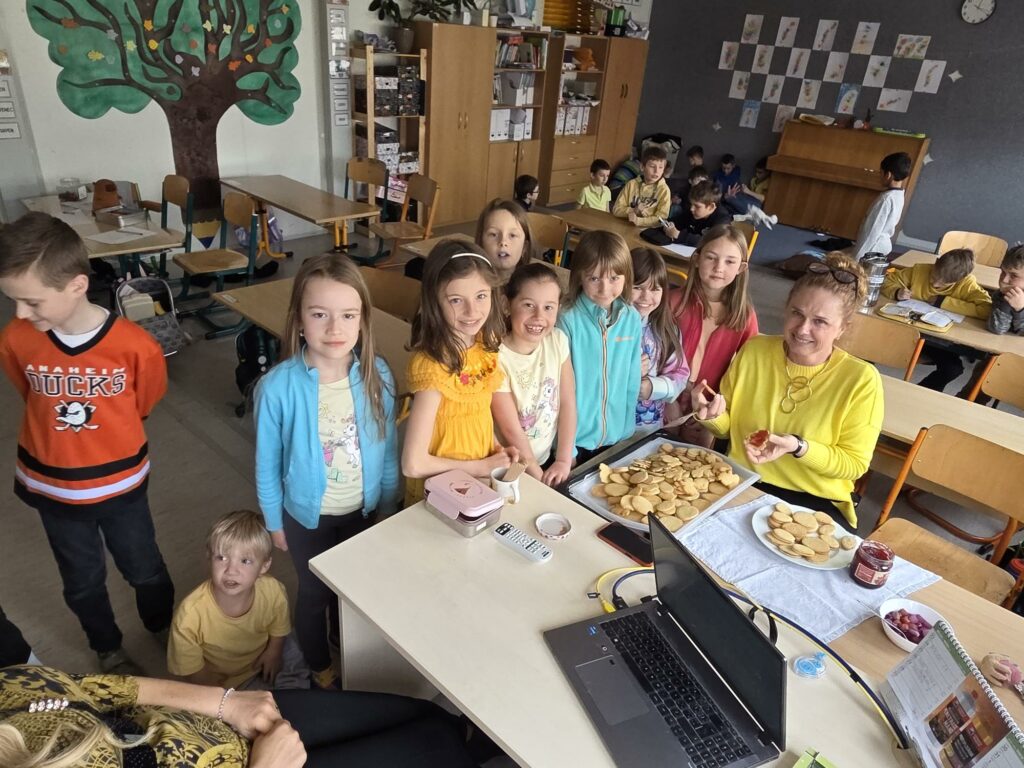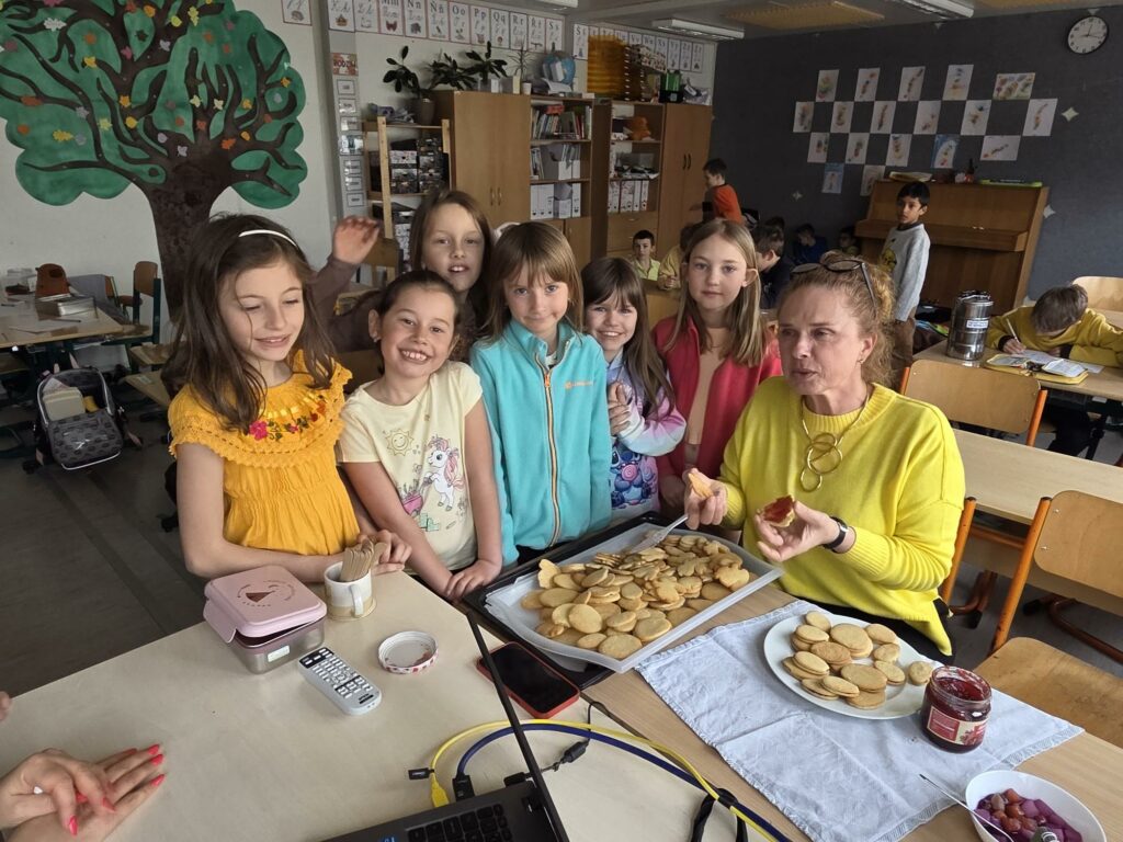 Z těsta vykrajovaly vajíčka a zajíčky, které jsme po upečení slepovali marmeládou. I když jsme cukroví nezdobili, radosti bylo víc než dost. Nechyběl smích, spolupráce ani nadšení z každého povedeného kousku.