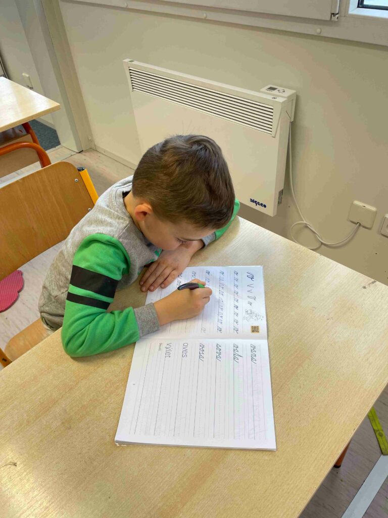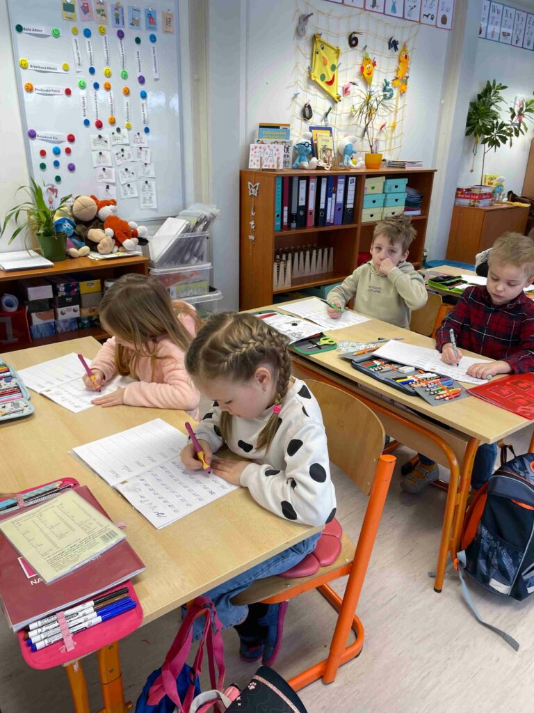 Psaní perem je pro prvňáčky důležitý krok nejen v rozvoji grafomotoriky, ale i trpělivosti, vytrvalosti a zodpovědnosti za vlastní práci. A právě tyto dovednosti si děti v 1.A postupně osvojují – s úsměvem, chutí a odhodláním.