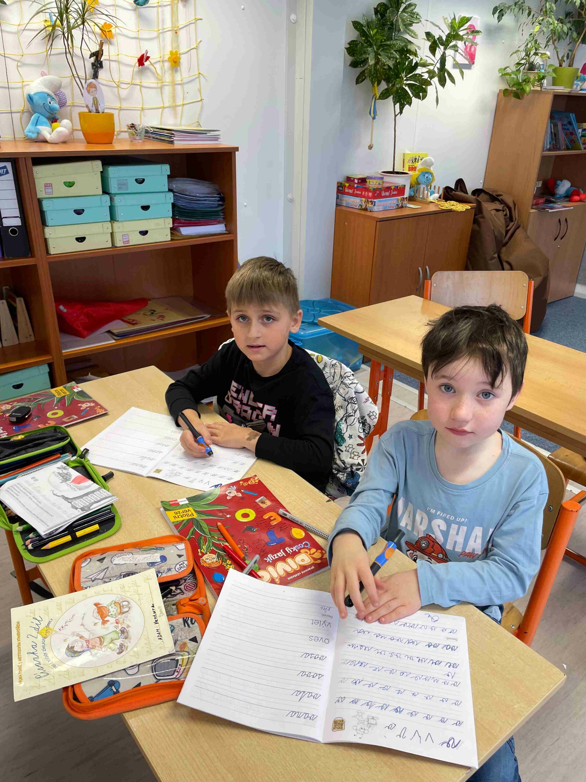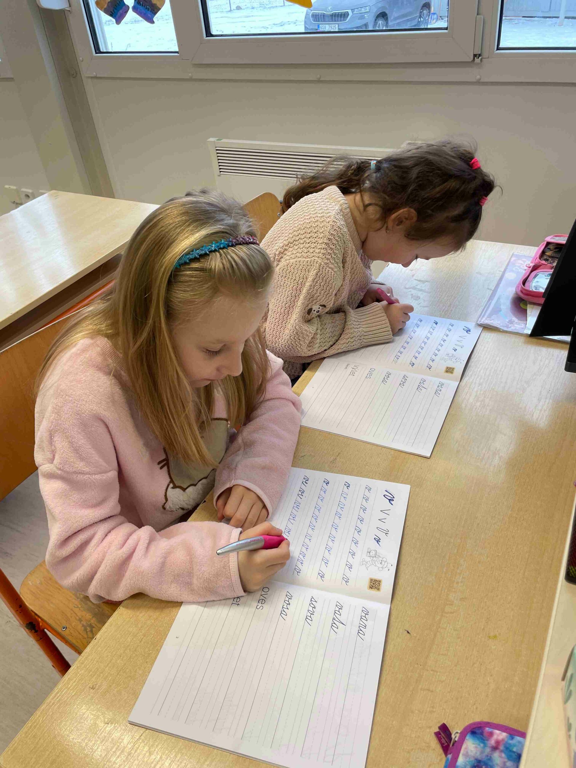 Po dlouhém trénování tužkou se děti dočkaly a poprvé vzaly do ruky skutečná pera. Nadšení bylo veliké – nové pomůcky, nové sešity a pocit, že se z nich pomalu stávají opravdoví školáci.