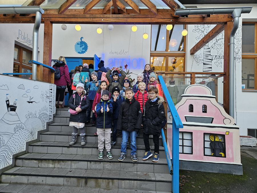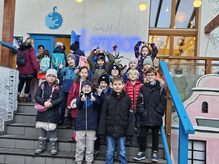 Dne 10. prosince vyrazila naše 2.B a vlastně celý první stupeň naší školy na kulturní zážitek do divadla Lampion v Kladně, kde na děti čekalo kouzelné představení Pták Ohnivák. Už od rána panovala slavnostní nálada – děti se krásně nastrojily, oblékly sváteční oblečení a s úsměvem vyrazily na cestu.