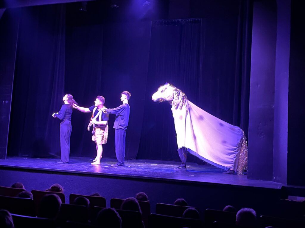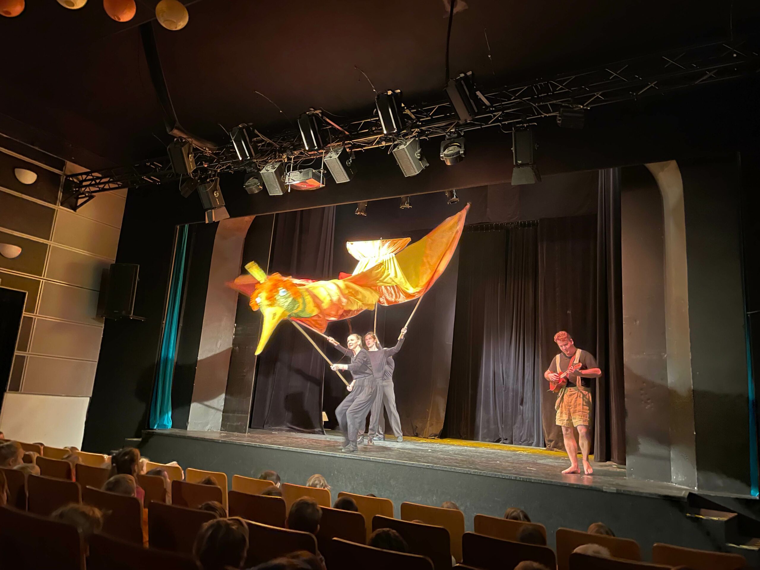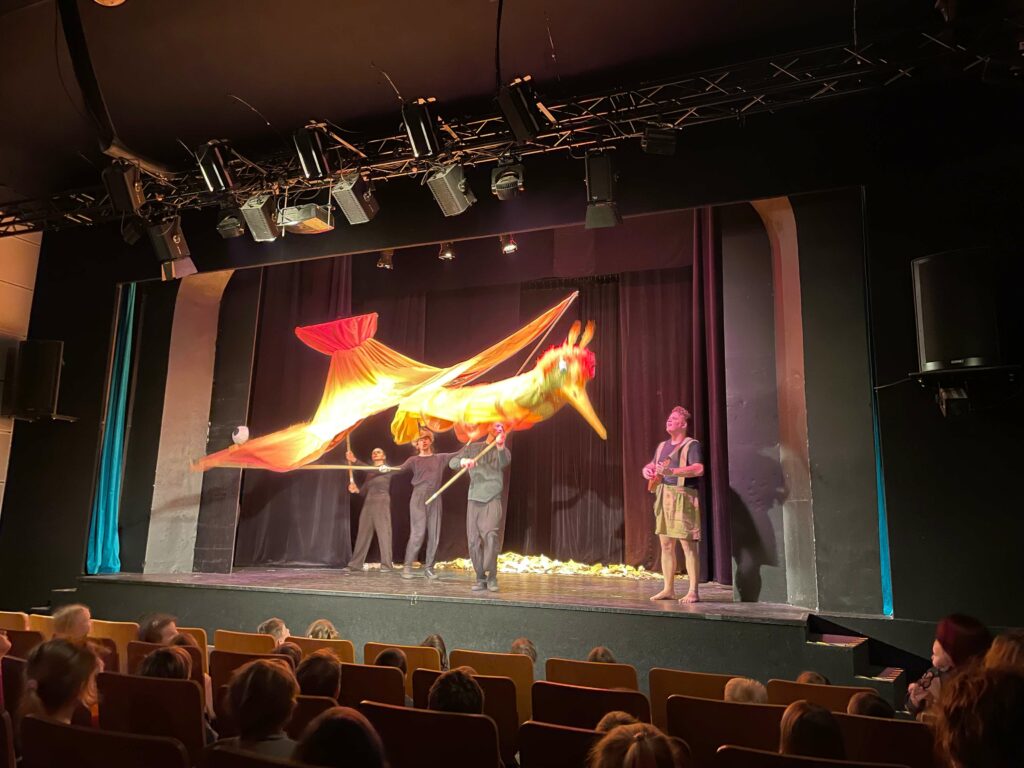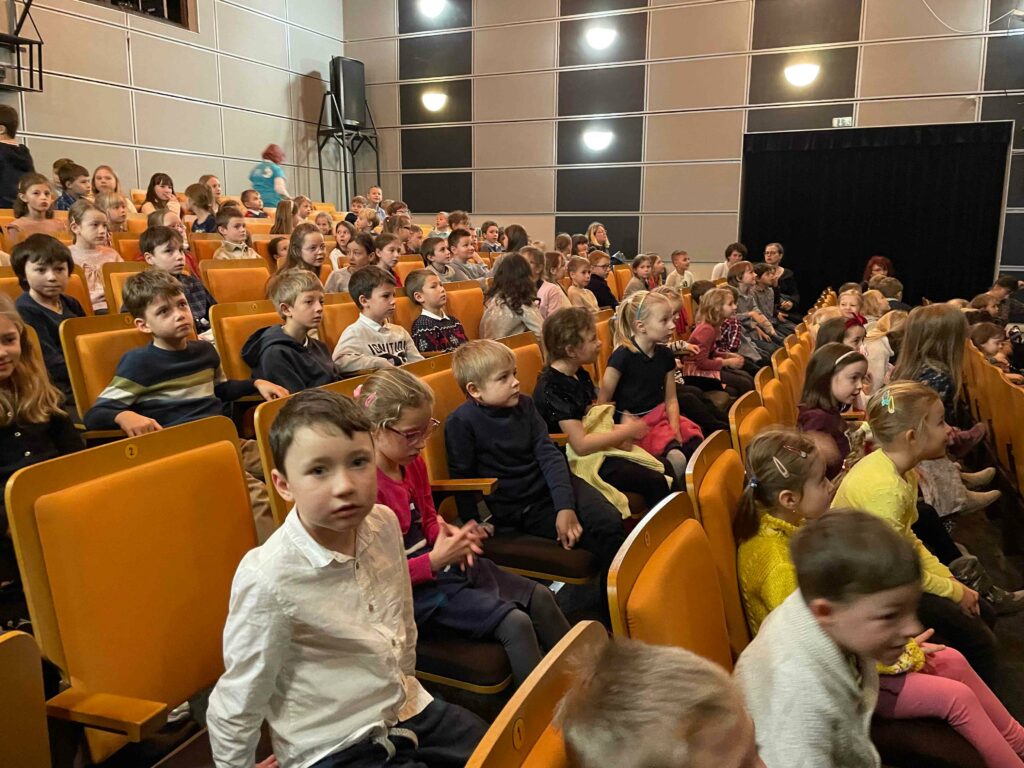 Po příjezdu do divadla se všichni pohodlně usadili a s napětím očekávali začátek pohádky. Představení bylo plné hudby, barev a napínavých okamžiků, které vtáhly děti do děje. Nechyběly ani veselé scény, při kterých se ozýval smích, a chvíle napětí, kdy všichni drželi palce hlavním hrdinům.